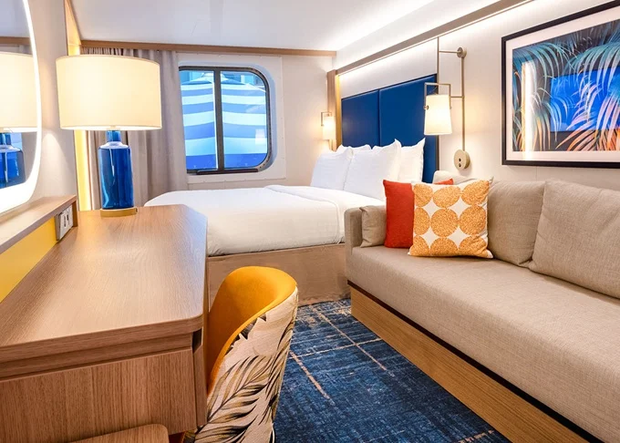 | T5 - Vnútorná kajuta s oknom / Surfside Family 17 m². Neotvárateľné okno s výhľadom na štvrť Surfside. 8. paluba vpredu. Max 4 osoby. | 3 669 € 1 223 € za osobu | ||