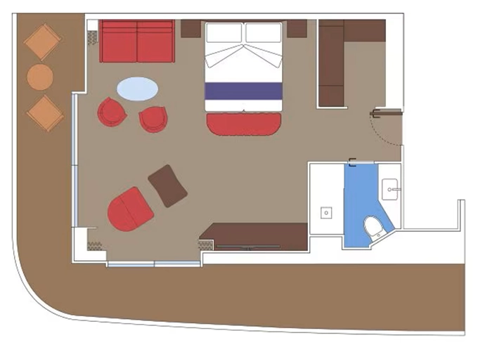 | SXJ - Grand Suite Aurea s terasou a vírivkou 35 m² + balkón od 37 m². Vírivka. 15/16. paluba. Cenový model Aurea. | 4 842 € 4 842 € za osobu |