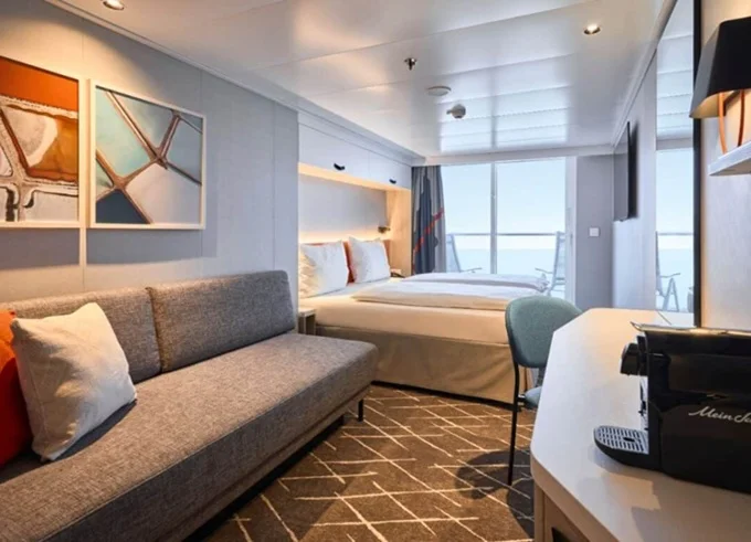 SSAO - Schöne Aussicht Suite 39 m² + balkón 10-12 m² s ležadlami a hojdacou sieťou. 7-14. paluba. Max 4 osoby. Výhody Suite. 5 787 € 1 929 € za osobu