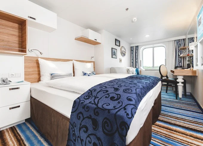 AUAO - Kajuta s oknom kat. A 17 m². Neotvárateľné okno. 3,8. paluba. Max 4 osoby. 8 453 € 8 453 € za osobu