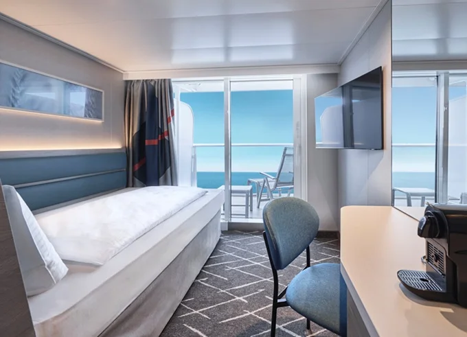 | SSAO - Schöne Aussicht Suite 39 m² + balkón 10-12 m² s ležadlami a hojdacou sieťou. 7-14. paluba. Max 4 osoby. Výhody Suite. | 8 338 € 4 169 € za osobu | ||