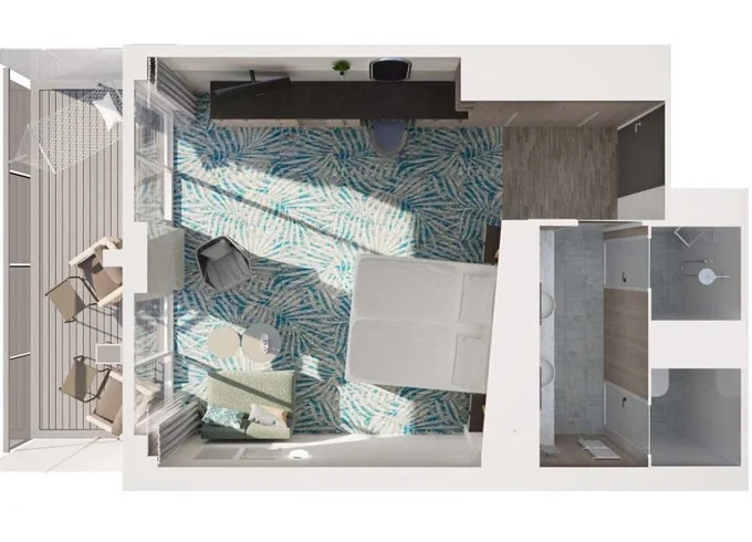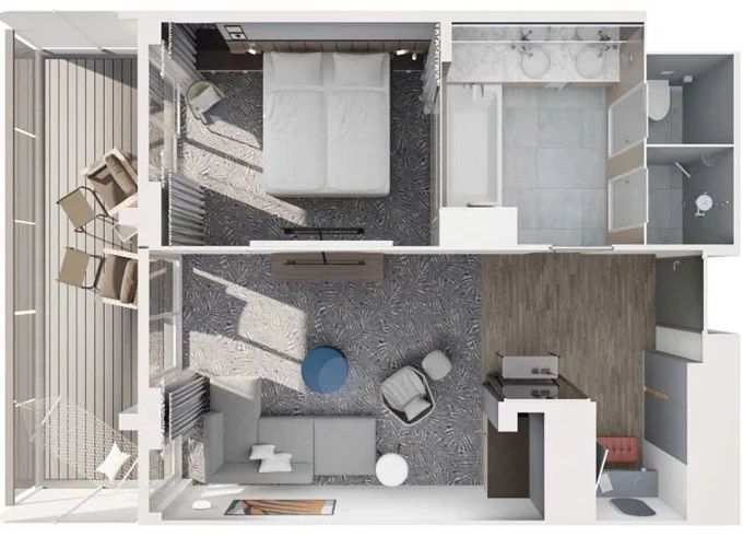 | JKBO - Junior Suite s balkónom B 26 m² + balkón 7 m² so stoličkami a podnožkami. 8-12. paluba. Max 4 osoby. Výhody Junior Suite. | 8 573 € 8 573 € za osobu | ||