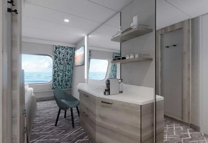 | SKBO - Fernweh Suite kat. B 28-38 m² + balkón 34 m² so stolom, ležadlami a hojdacou sieťou. 14. paluba. Max 4 osoby. Výhody Suite. | 14 698 € 7 349 € za osobu | ||